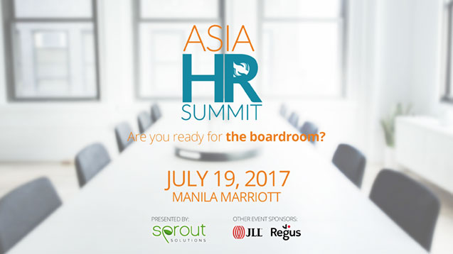 Who We Are **Asia HR Summit 2017**, presented by **Sprout Solutions**, with Elite Sponsorship by **JLL** and **Regus**. Are you ready for the boardroom? Despite climbing a long way up the value chain, HR continues to be thought as a...